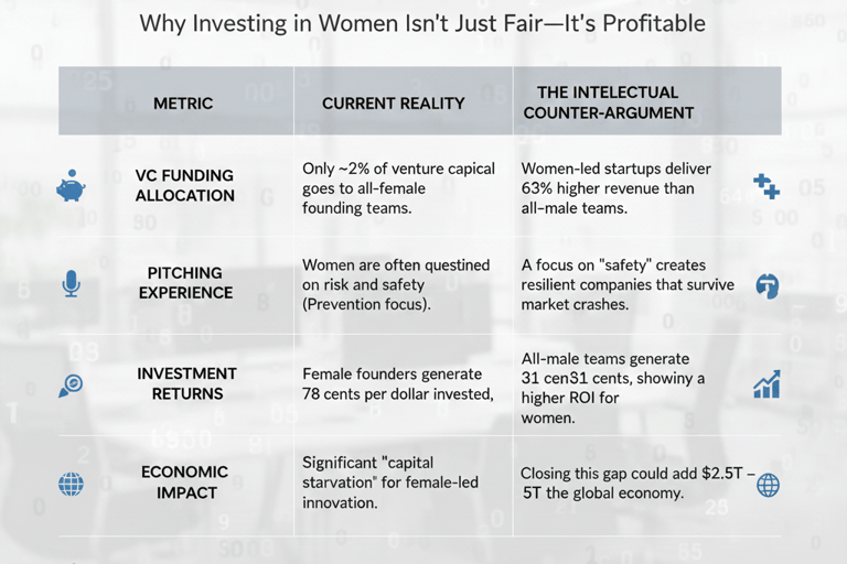 While the narrative around women in business is often one of "progress," the financial data reveals a stark "Intellectual Gap". Investors are currently leaving billions on the table by underfunding female founders. This isn't just about equity, it's about "Return on Investment (ROI)".